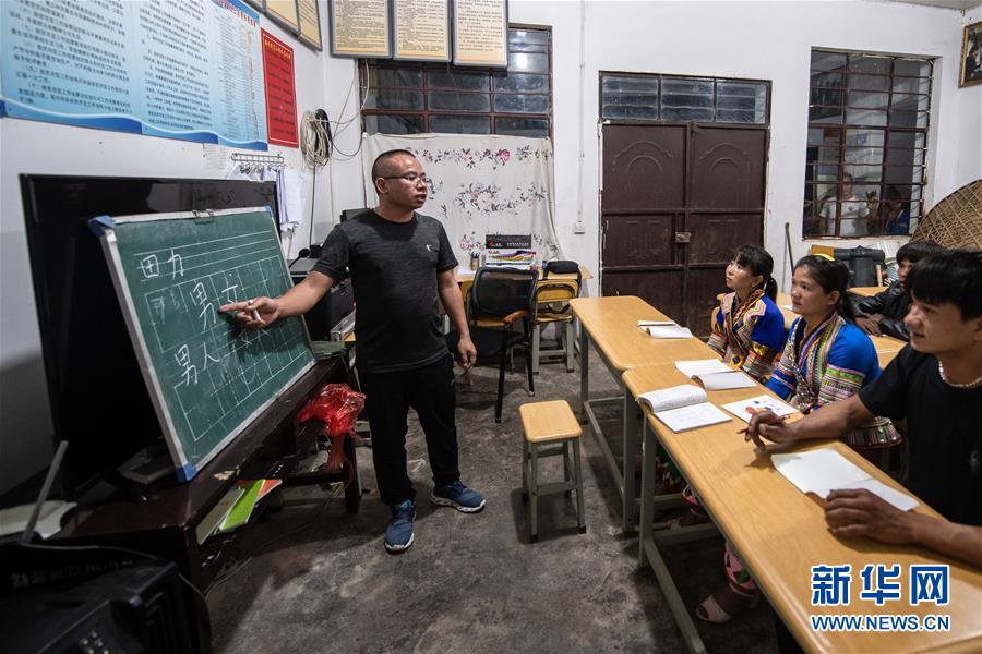 4月10日,在云南省勐海縣布朗山鄉(xiāng)曼囡村曼班三隊(duì),娜四在村里上夜校。新華社記者胡超攝