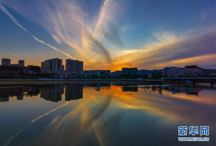晚霞倒映在流經(jīng)翁源縣城的滃江(4月27日攝)。廣東省韶關(guān)市翁源縣地處南嶺南麓,是國家重點生態(tài)功能區(qū)。近年來,經(jīng)濟發(fā)展曾經(jīng)滯后的翁源牢固樹立綠水青山就是金山銀山的發(fā)展理念,促進生態(tài)保護和經(jīng)濟社會協(xié)調(diào)發(fā)展。新華社記者劉大偉攝