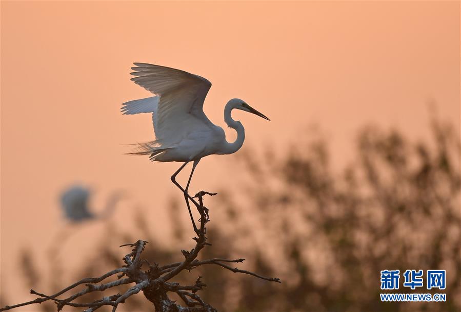 白鷺在位于鄱陽湖畔的南昌市象山森林公園內(nèi)棲息(4月27日攝)。近日,在江西省南昌市新建區(qū)象山森林公園內(nèi),已安家筑巢的大批白鷺進入繁殖旺季。在夕陽的照耀下,白鷺時而翩翩起舞,時而展翅盤旋,構成一幅美麗的自然生態(tài)畫卷。新華社記者萬象攝