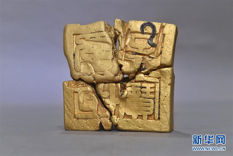 這是發(fā)掘出水的“蜀世子寶”金印局部(4月15日攝)。新華社記者劉坤攝
