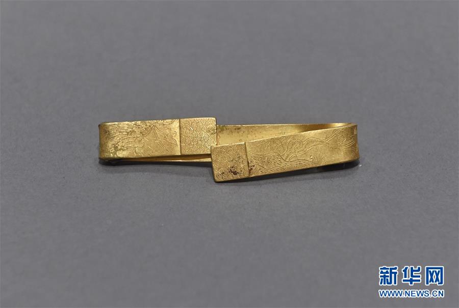 這是發(fā)掘出水的花卉紋金手鐲(4月15日攝)。新華社記者劉坤攝