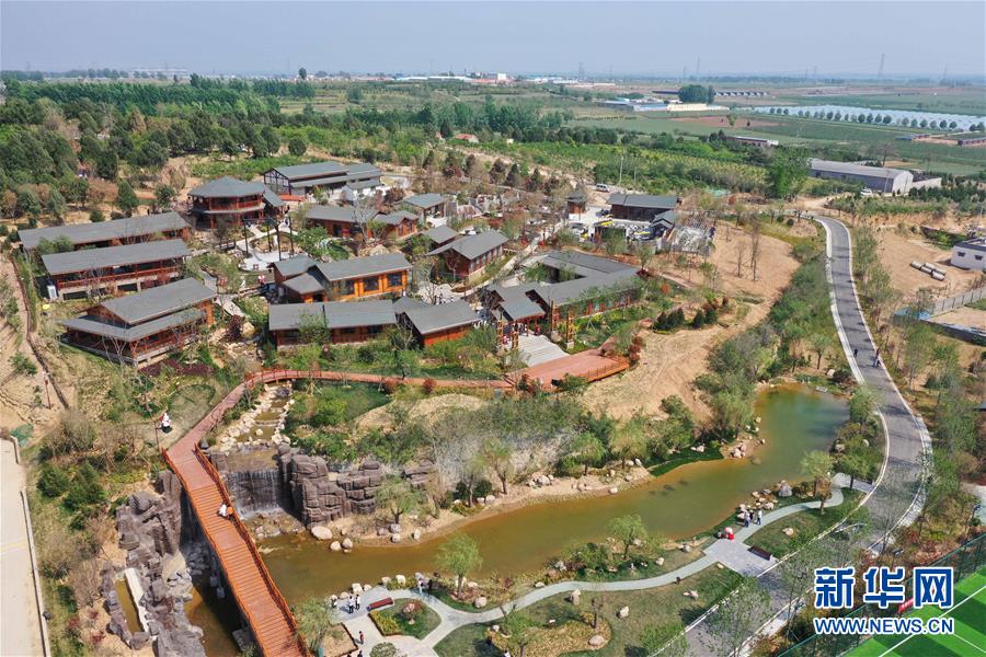 這是5月1日拍攝的河南省鶴壁市淇濱區(qū)鉅橋鎮(zhèn)崗坡村渝派火鍋樂園(無人機照片)。  新華社記者馮大鵬攝
