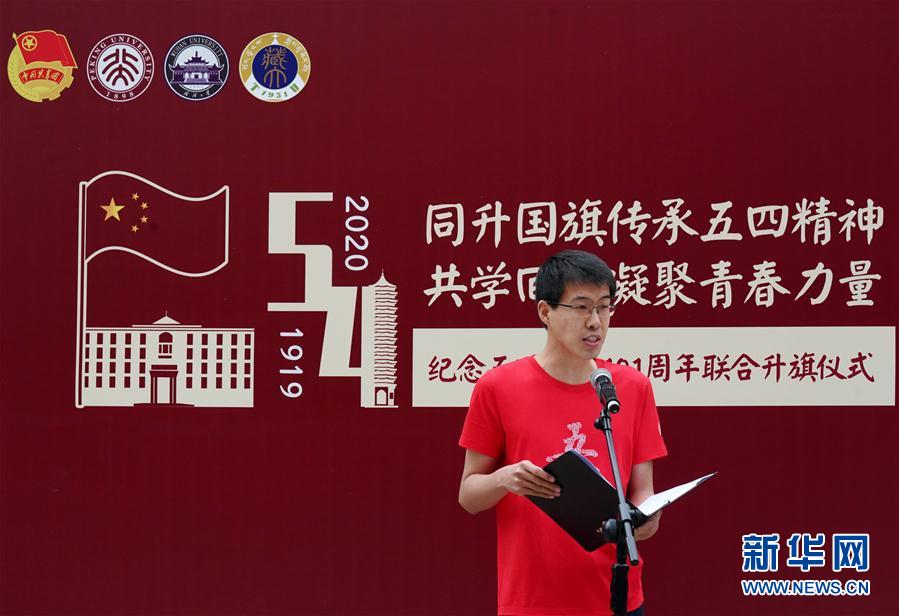 5月4日,北京大學青年代表在升旗儀式上發(fā)言。 當日,北京大學通過與武漢大學、西藏大學、北京大學研究生支教團聯(lián)合舉辦紀念五四運動升旗儀式以及北京大學2020年五四青春詩會等活動,傳承五四精神,紀念五四青年節(jié)。 新華社記者 張晨霖 攝