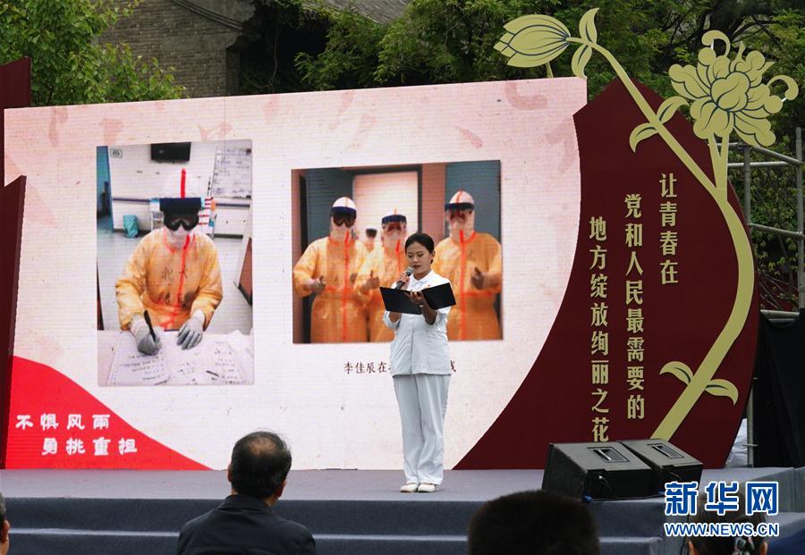 5月4日,北京大學(xué)援鄂醫(yī)療隊“90后”黨員代表在北大五四青春詩會朗誦。 當(dāng)日,北京大學(xué)通過與武漢大學(xué)、西藏大學(xué)、北京大學(xué)研究生支教團聯(lián)合舉辦紀念五四運動升旗儀式以及北京大學(xué)2020年五四青春詩會等活動,傳承五四精神,紀念五四青年節(jié)。 新華社記者 張晨霖 攝