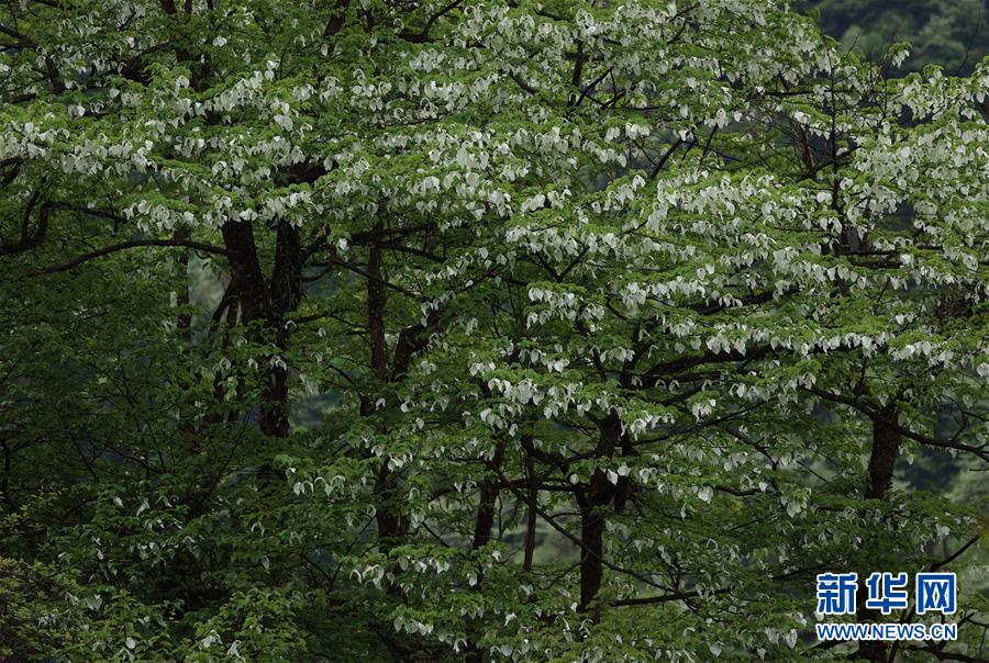 位于四川省滎經(jīng)縣的龍蒼溝國家森林公園里,鴿子花盛開(5月4日攝)。目前,位于四川省大相嶺山脈東麓北坡的龍蒼溝國家森林公園里,約8萬畝鴿子花盛開,猶如鴿群展翅欲飛。鴿子花即珙桐花,珙桐是珍稀植物,有著植物“大熊貓”“活化石”之稱,是國家一級(jí)保護(hù)植物,也是著名的觀賞植物。2008年,華中農(nóng)業(yè)大學(xué)、湖北民族學(xué)院和四川省縈經(jīng)縣林業(yè)部門聯(lián)合對龍蒼溝森林公園的珙桐進(jìn)行了種群生態(tài)學(xué)調(diào)查,發(fā)現(xiàn)珙桐在這里共分布約8萬畝,集中成片分布近4萬畝。珙桐面積之大、株數(shù)之多、密度之高,十分罕見。新華社記者 江宏景 攝
