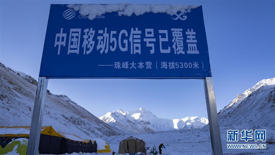 珠峰大本營開通了5G信號(hào)(5月3日攝)。新華社記者普布扎西攝