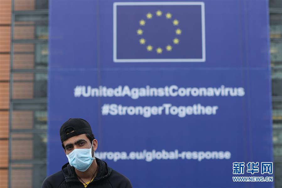 歐盟委員會5月6日預測,受新冠疫情影響,2020年歐洲經濟將出現“歷史性衰退”,歐盟經濟將萎縮7.5%,歐元區(qū)經濟將萎縮7.75%。這是5月4日在比利時布魯塞爾的歐盟委員會總部大廈前拍攝的一名戴口罩的男子。新華社記者鄭煥松攝