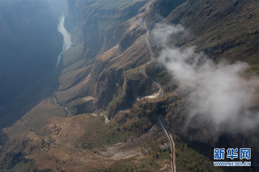 這是布拖縣阿布洛哈村通村公路(2019年12月29日攝,無人機(jī)照片)。新華社記者江宏景攝