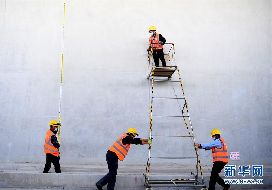 5月10日,中鐵電氣化局工程人員在鄭州新鄭機(jī)場(chǎng)至鄭州南站城際鐵路工地施工。新華社記者郝源攝