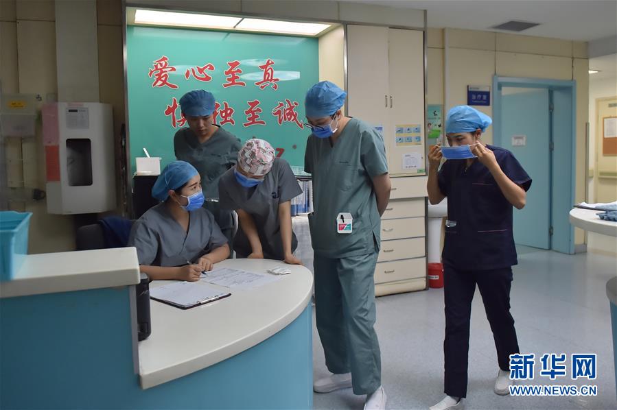 5月11日,在北京地壇醫(yī)院感染二科護(hù)士站,白班護(hù)士張莉(左一)和夜班護(hù)士們交接工作。北京地壇醫(yī)院是北京市收治新冠肺炎患者的定點(diǎn)醫(yī)院之一,醫(yī)院的醫(yī)護(hù)人員一直奮戰(zhàn)在抗擊疫情的一線。在國(guó)際護(hù)士節(jié)前夕,記者前往北京地壇醫(yī)院,記錄下抗疫一線護(hù)士的日常工作狀態(tài)。新華社記者彭子洋攝