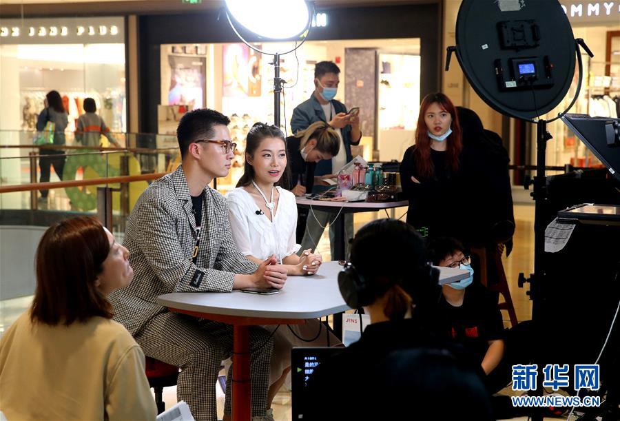 這是5月9日在上海一家商場拍攝的網(wǎng)絡(luò)直播活動現(xiàn)場。新華社記者陳飛攝