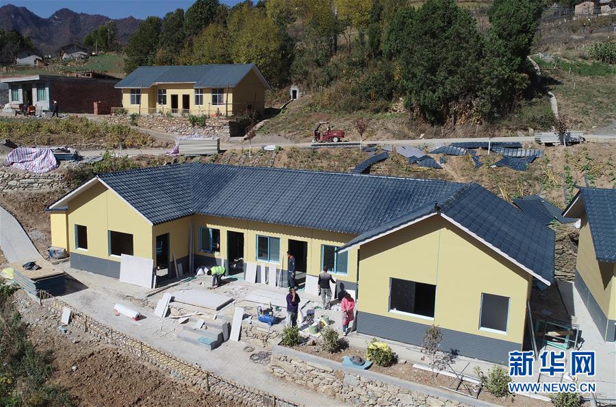 這是安康市漢濱區(qū)茨溝鎮(zhèn)西溝村針對D級危房進行重建施工的輕鋼裝配式房屋(2018年10月29日攝,無人機照片)。新華社記者邵瑞攝