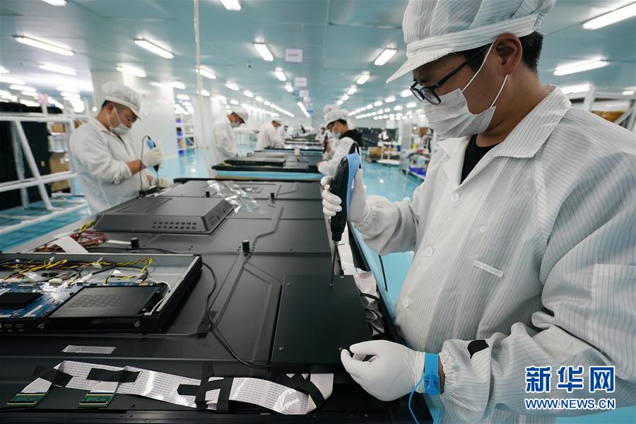 在位于宿遷激光產(chǎn)業(yè)園的江蘇華科創(chuàng)智技術(shù)有限公司,工人在觸摸屏生產(chǎn)車間作業(yè)(5月13日攝)。江蘇省宿遷市2016年初啟動建設(shè)宿遷激光產(chǎn)業(yè)園,目前,園區(qū)共有激光及相關(guān)配套企業(yè)50余家,涉及激光切割、激光打標、激光醫(yī)療等。當(dāng)?shù)夭粩嗤晟茍@區(qū)配套設(shè)施,推動激光產(chǎn)業(yè)集聚,打造激光研發(fā)、裝備制造和加工應(yīng)用的完整產(chǎn)業(yè)鏈。新華社記者李博攝