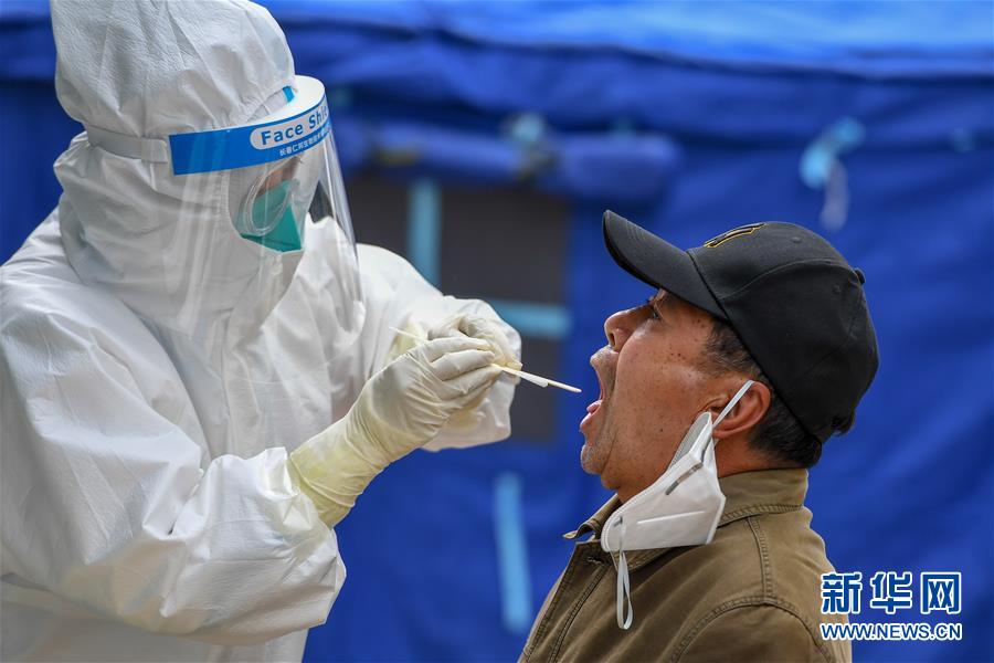 5月15日,在舒蘭市建馨園小區(qū),工作人員為居民采集咽拭子。當(dāng)日,從吉林市7家市直醫(yī)院抽調(diào)的300名護士經(jīng)培訓(xùn)后,全部投入到舒蘭市(隸屬于吉林市)核酸采樣工作中。為提供追溯傳染源所必需的核酸檢測相關(guān)數(shù)據(jù),舒蘭市根據(jù)確診病例的活動軌跡,將流調(diào)和核酸檢測范圍擴大至本地確診病例和無癥狀感染者的次密接人員及一般接觸者。新華社記者張楠攝