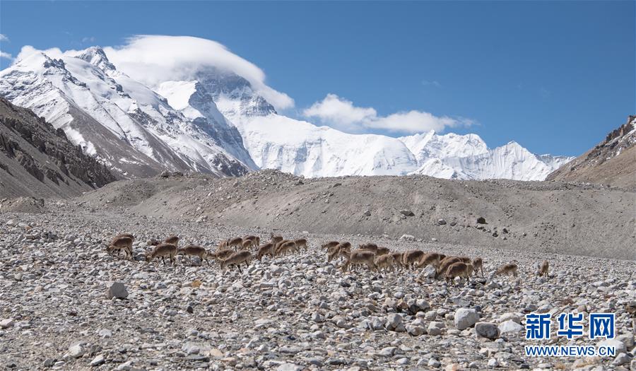 棲息在珠穆朗瑪峰國家級自然保護(hù)區(qū)內(nèi)的巖羊(5月8日攝)。新華社記者晉美多吉攝
