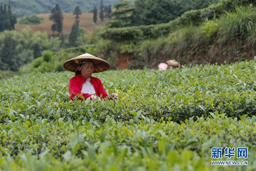 5月17日,村民在新院村茶葉基地采摘夏茶。新華社發(fā)(黃偉攝)