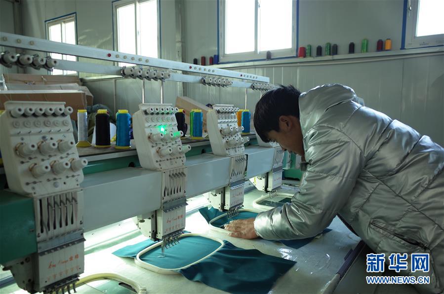 在西藏拉薩市達(dá)孜區(qū),縫紉工人加央旦增在服裝車間操作縫紉機(jī)(5月15日攝)。新華社記者格桑邊覺攝