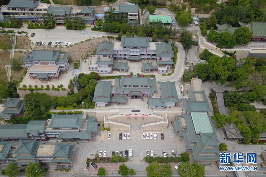 這是5月18日在蘭州市城關(guān)區(qū)拍攝的白塔山下金城關(guān)文化博覽園初夏景象(無人機照片)。新華社記者范培珅攝