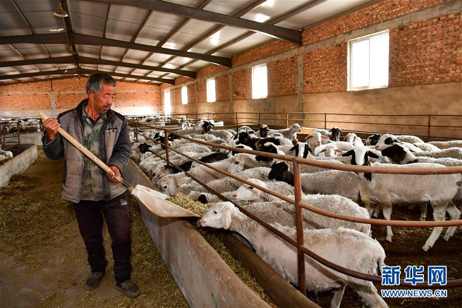 宋家溝村村民賀毛小在養(yǎng)殖合作社內喂羊(5月19日攝)。新華社記者曹陽攝