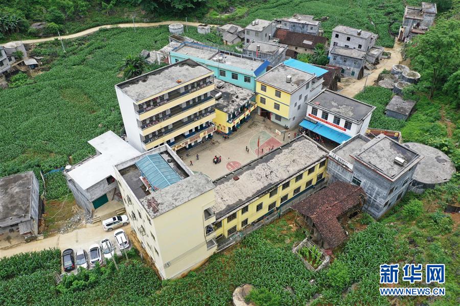 這是面貌煥然一新的廣西大化瑤族自治縣板升鄉(xiāng)弄勇小學(2019年5月10日攝,無人機照片)。新華社記者黃孝邦攝
