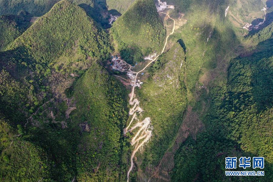 這是在進(jìn)行路面硬化的大化瑤族自治縣七百弄鄉(xiāng)弄合村弄魯屯到弄確屯的屯級(jí)路(5月14日攝,無(wú)人機(jī)照片)。新華社記者曹祎銘攝