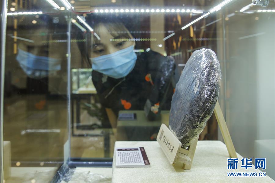 5月21日,在位于北京通惠河畔的中華古茶博物館,一名觀眾在首場展覽活動(dòng)——“大道遺真:館藏普洱茶專題展”上觀看一餅“號級茶”。 當(dāng)日,以“茶和世界 共品共享——茶,讓我們在一起”為主題的首個(gè)“國際茶日”萬里茶道系列活動(dòng)在北京中華古茶博物館開啟。 新華社記者 張玉薇 攝