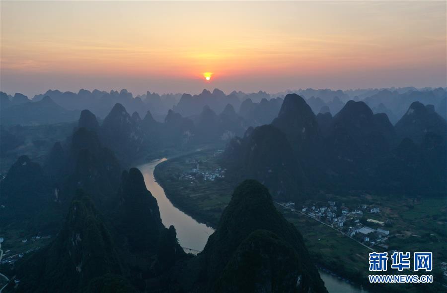 這是在廣西桂林市陽朔縣興坪鎮(zhèn)拍攝的風(fēng)光(5月19日攝,無人機照片)?!吧n蒼森八桂,茲地在湘南。江作青羅帶,山如碧玉篸……”一千多年前,唐朝詩人韓愈寫盡桂林山水之美。初夏時節(jié),在廣西桂林市陽朔縣興坪鎮(zhèn),藍天白云下,煙雨朦朧中,桂林山水盡顯秀美。新華社記者 周華 攝