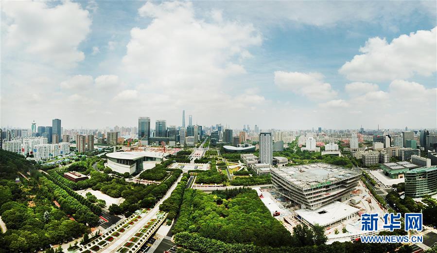 從空中俯瞰建設(shè)中的上海圖書(shū)館東館(右)及其所在區(qū)域(無(wú)人機(jī)照片,5月22日攝)。 新華社記者 方喆 攝