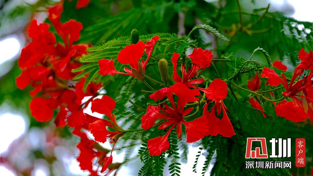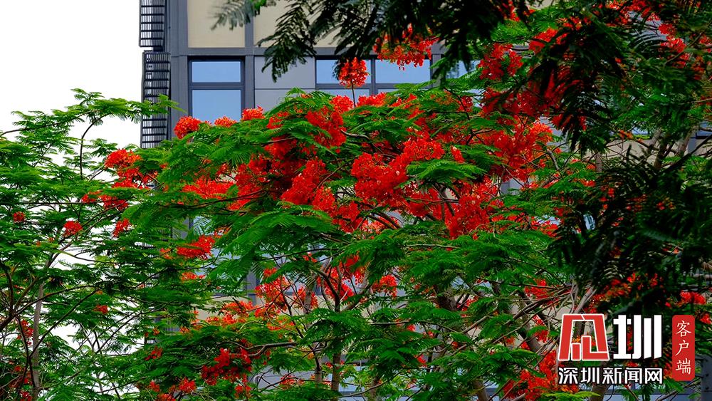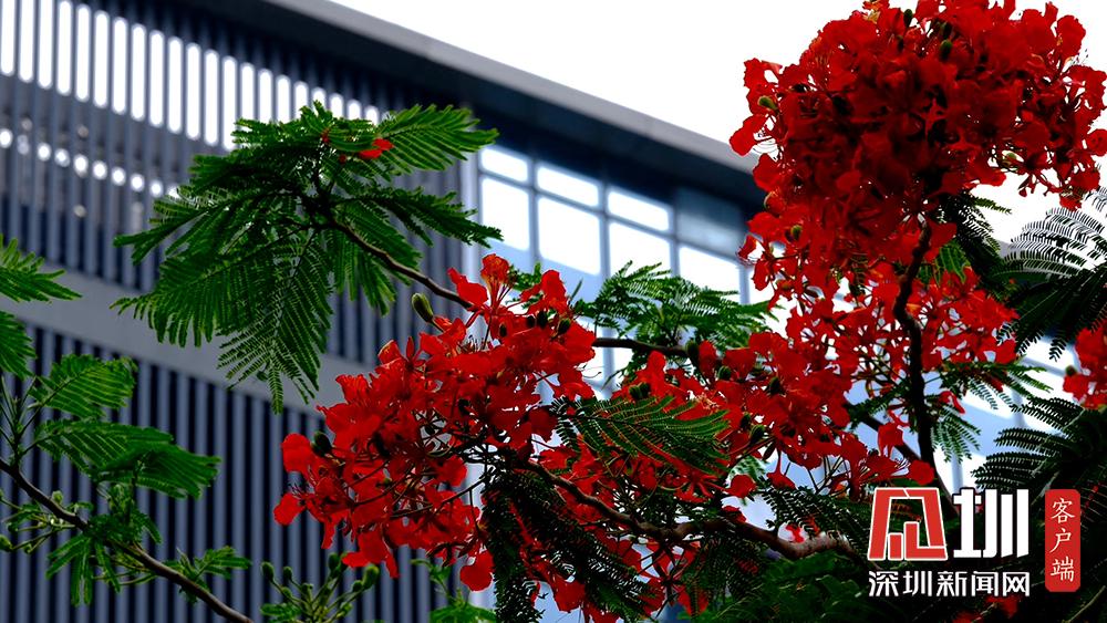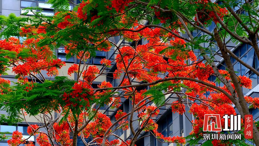 近日,深圳的鳳凰花進入花期。TCL科技園內(nèi),隨處可見盛開的鳳凰花。徐捷攝