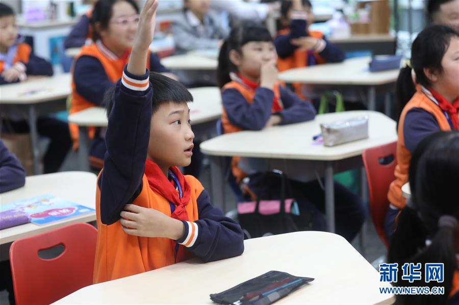 5月25日,貴陽(yáng)市中天北京小學(xué)未來方舟校區(qū)一名學(xué)生在開學(xué)第一課上舉手發(fā)言。新華社記者歐東衢攝