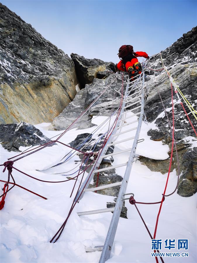 5月27日,2020珠峰高程測(cè)量登山隊(duì)正在向珠峰峰頂挺進(jìn)。新華社特約記者扎西次仁攝