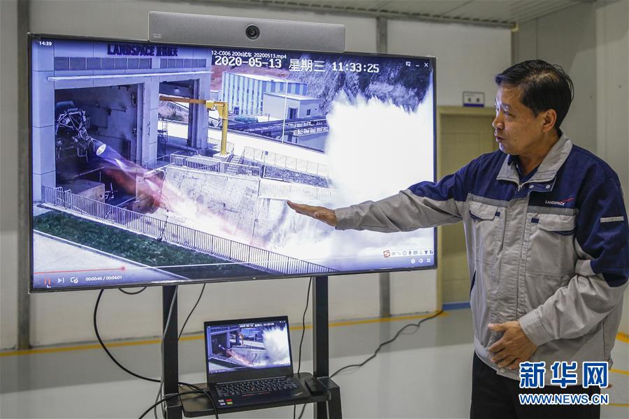 5月26日,藍(lán)箭航天技術(shù)有限公司總經(jīng)理杜方平介紹發(fā)動機(jī)點火試驗。新華社記者張玉薇攝