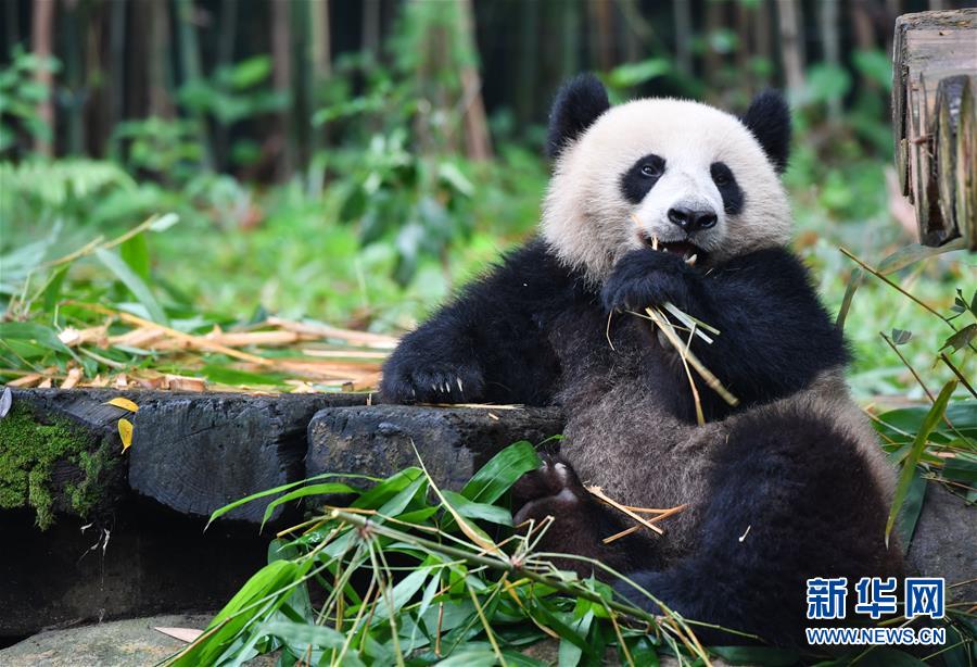 5月27日,大熊貓婷仔在享受竹子大餐。正在享受竹子大餐的廣州長隆野生動(dòng)物世界大熊貓婷仔被大熊貓隆仔搶食,兩只大熊貓上演一場爭食戲碼。新華社記者劉大偉攝