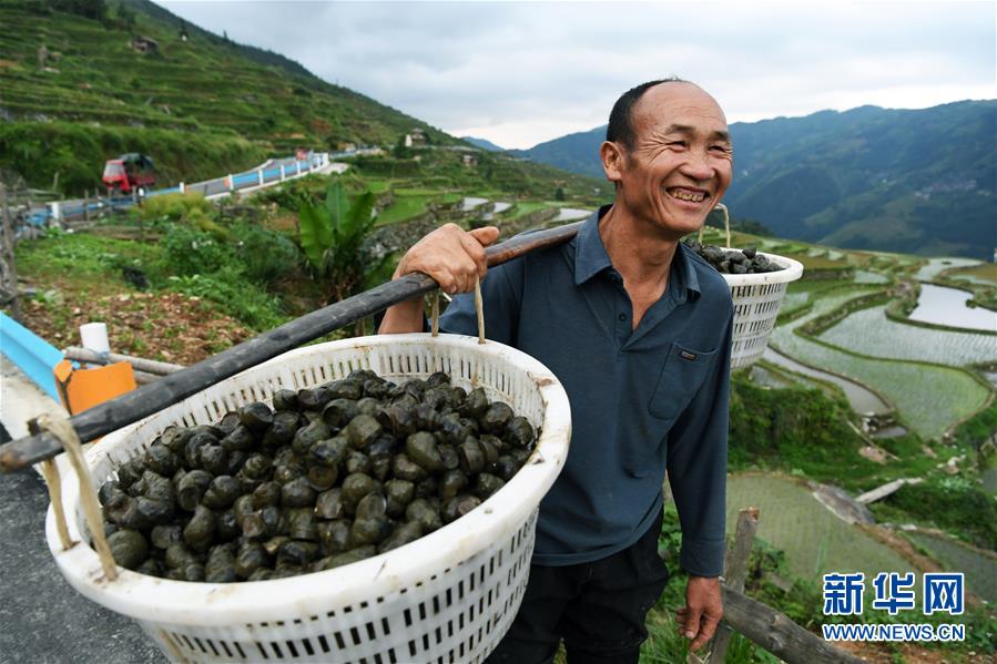 在田螺養(yǎng)殖過(guò)程中,采取“公司+合作社+農(nóng)戶”的模式,政府統(tǒng)一向龍頭公司采購(gòu)種螺交給合作社,合作社根據(jù)貧困戶水田規(guī)模和意愿發(fā)放種螺,同時(shí)公司技術(shù)人員入村開展養(yǎng)殖技術(shù)培訓(xùn),田螺收獲時(shí)再由合作社對(duì)接種螺公司統(tǒng)一上門按保底價(jià)回收,解除了貧困戶養(yǎng)殖和銷售的后顧之憂,進(jìn)一步拓寬山區(qū)群眾脫貧增收渠道。新華社記者楊文斌攝