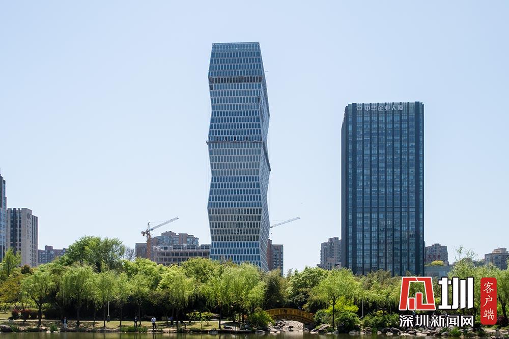 2018年4月10日,上海,長寧區(qū)古北商務(wù)區(qū)一新建超高層建筑造型頗為獨特,起伏收分層疊向上的體量和節(jié)節(jié)高的竹子頗為神似。從各個角度看,大樓的外邊都呈折線,有附近居民戲稱這幢大樓為“扭腰大樓”。