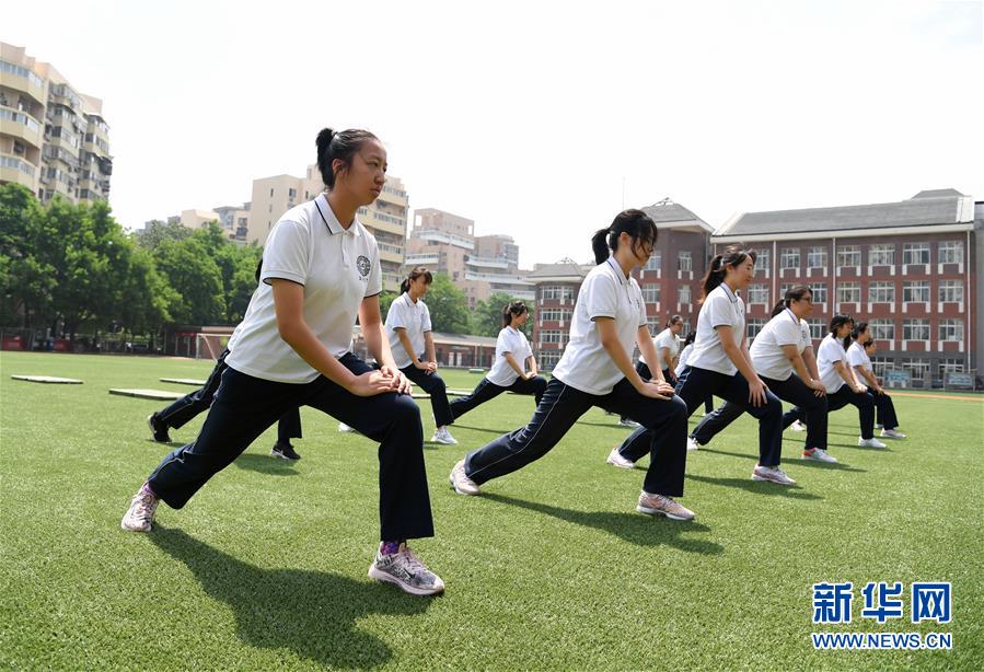 5月28日,北京市第十八中學(xué)初三年級的學(xué)生在體育課上做準備活動。北京市第十八中學(xué)共有初三年級學(xué)生340余名,學(xué)校在做好初三年級學(xué)生中考文化課備考的同時,加強學(xué)生心理及身體素質(zhì)的鍛煉,以最好的精神狀態(tài)備戰(zhàn)中考。據(jù)悉,2020年北京中考報名人數(shù)為7.5萬人,比去年增加25%。新華社記者任超攝