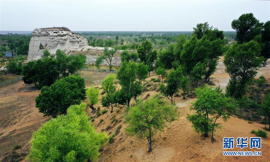 統(tǒng)萬城北接浩瀚的毛烏素沙漠,千余年來,隨著惡劣生態(tài)環(huán)境的影響,曾經(jīng)的城池遺存遭到風(fēng)雨流沙侵蝕,一度掩埋于沙漠之下。如今,隨著當(dāng)?shù)貛状舜罅χ紊?,生態(tài)環(huán)境得以明顯改善,統(tǒng)萬城遺址也隨之變成綠意盎然的“大漠名勝”。
