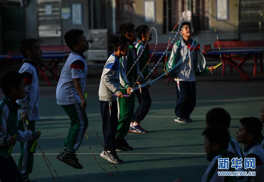 跳繩運動已經(jīng)深深融入七星小學的日常,體育課上同學們在練跳繩(2019年11月18日攝)。新華社記者劉大偉攝