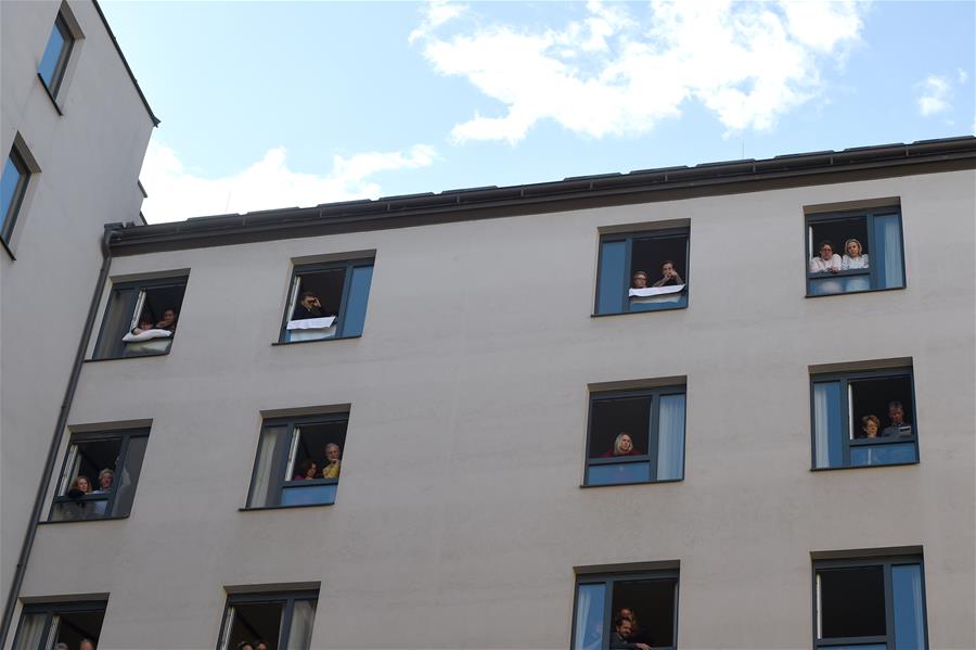 5月30日,在奧地利維也納“時代精神”酒店內,人們在房間窗口欣賞歌劇演出。當日,奧地利首都維也納的一家名為“時代精神”的酒店為迎接“解封”后恢復營業(yè),在其庭院內舉辦“窗口音樂會”。按照奧政府此前公布的“解封”時間表,從29日起,賓館酒店以及健身房、游泳池和游樂場等休閑娛樂場所有條件恢復運營。新華社記者郭晨攝