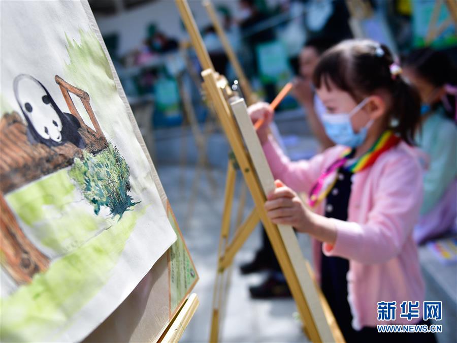 5月31日,小朋友在西寧熊貓館內(nèi)繪畫。“六一”國際兒童節(jié)來臨之際,西寧熊貓館組織小朋友參觀游園、現(xiàn)場繪畫、制作熊貓創(chuàng)意產(chǎn)品,同時還給館里的大熊貓準備了兒童節(jié)“大餐”,與小朋友們一起迎接節(jié)日。新華社記者張龍攝