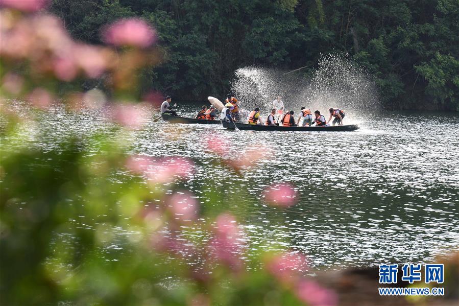 6月2日,游客在云南丘北縣普者黑仙人洞村的湖上乘船游玩。新華社記者楊宗友攝。
