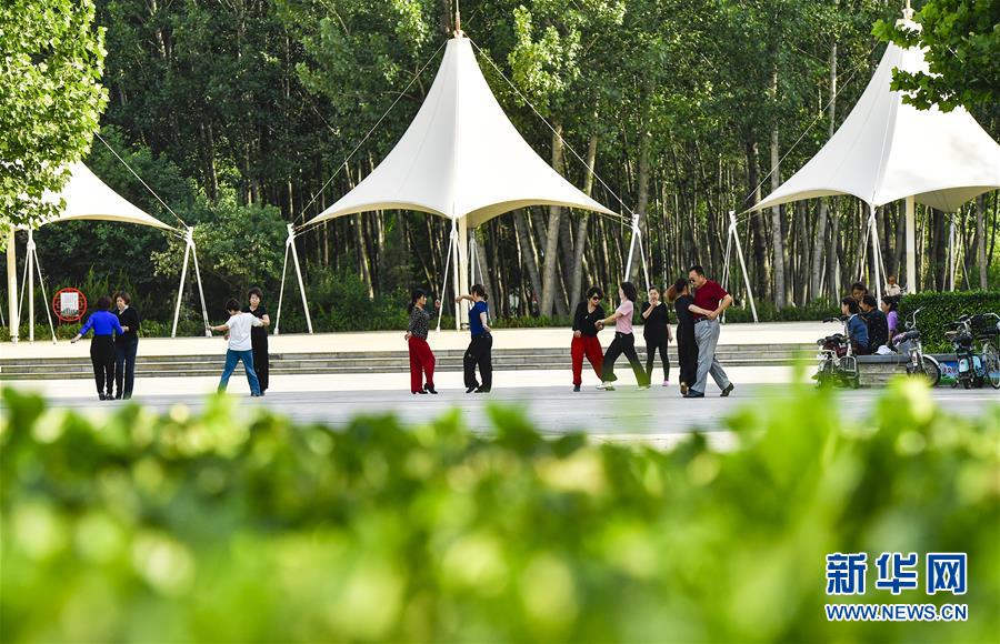 6月5日,市民在文安縣森林公園內(nèi)健身。近年來,河北省文安縣將植樹造林與城市建設有機融合,探索“政府引導、企業(yè)運作、多方共贏”的市場化植樹造林新模式,大規(guī)模推進國土綠化,打造人與自然和諧共生的優(yōu)美生態(tài)環(huán)境,構筑京津雄綠色屏障。截至目前,該縣森林覆蓋率已經(jīng)達到33%,城區(qū)綠地面積達到36.48%。新華社記者李曉果攝。