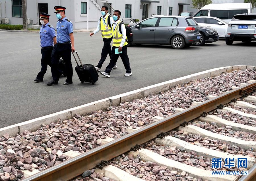 6月5日,伊迪內(nèi)卡邱(右一)和特瑞薩(右二)在帶教司機的帶領下去庫內(nèi)接車。 新華社記者 李安 攝