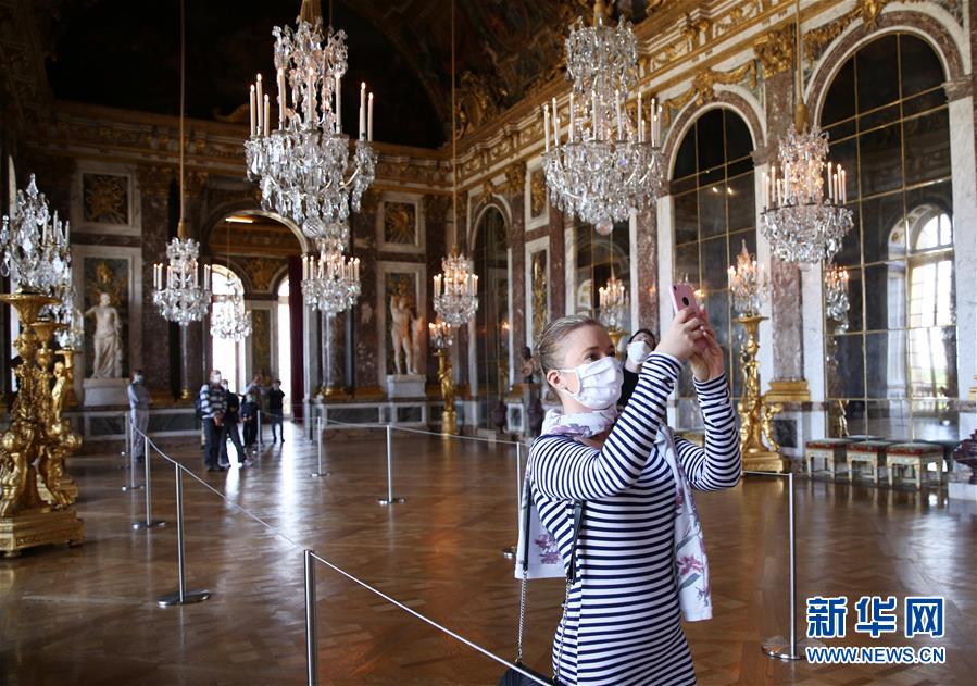 6月6日,游客在法國巴黎近郊凡爾賽宮的鏡廳內參觀游覽。 新華社記者 高靜 攝