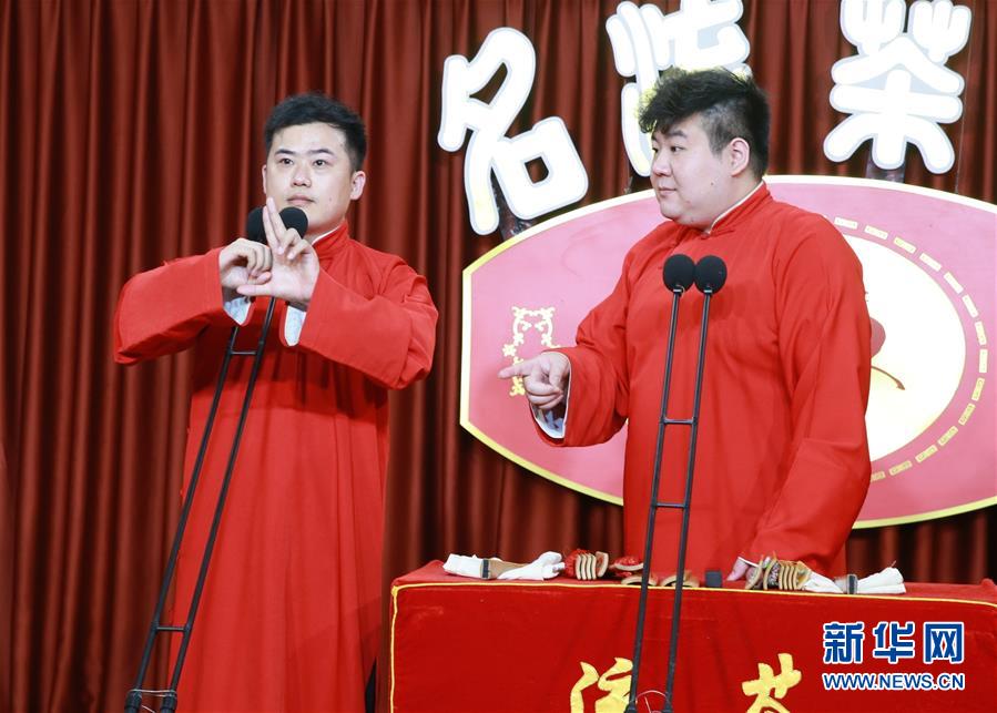 6月6日晚,天津名流茶館的相聲演員在付費直播《名流名家“逗你玩”》演出中說相聲。隨著疫情防控形勢逐漸向好,天津的一些茶館紛紛轉(zhuǎn)戰(zhàn)“云端”說相聲,推出付費直播演出,并邀請一些幸運觀眾到現(xiàn)場觀看,在傳播津味相聲、培養(yǎng)年輕觀眾的同時,也為即將到來的線下演出“預(yù)熱”。新華社記者周潤健攝