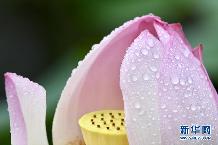 6月7日,一陣小雨過后,福州金山公園內(nèi)盛開的荷花愈加?jì)善G欲滴。新華社記者姜克紅攝