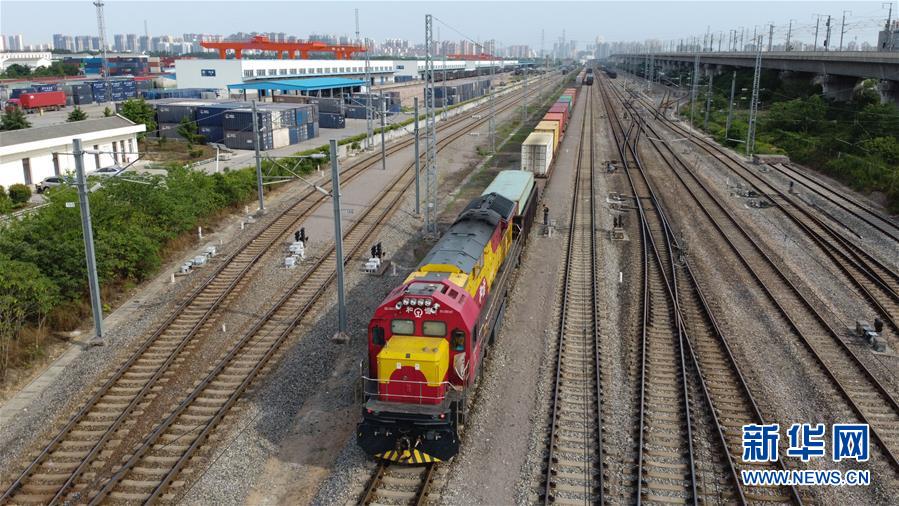 6月6日,合肥首開至荷蘭蒂爾堡的中歐班列準(zhǔn)備從合肥北站物流基地駛出(無人機(jī)照片)。當(dāng)日,搭載82個(gè)標(biāo)準(zhǔn)集裝箱的中歐班列從中國鐵路上海局集團(tuán)有限公司合肥貨運(yùn)中心合肥北站物流基地駛出發(fā)往荷蘭蒂爾堡,標(biāo)志著合肥中歐班列通往荷蘭蒂爾堡的線路正式開通。新華社記者張端攝