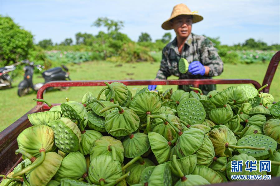 6月9日,村民在??邶埲A區(qū)龍泉鎮(zhèn)椰子頭村裝運(yùn)采摘的蓮蓬。初夏時節(jié),位于海南??邶埲A區(qū)龍泉鎮(zhèn)的蓮蓬逐漸成熟,當(dāng)?shù)卮迕窦泳o采摘,一派繁忙景象。新華社記者蒲曉旭攝