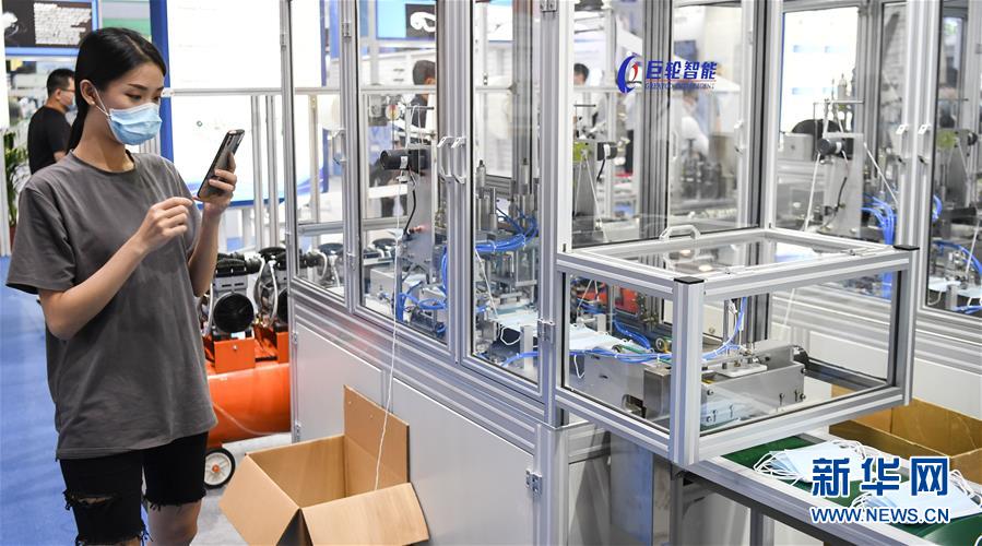 6月10日,觀眾拍攝展會上的一臺口罩生產(chǎn)設(shè)備。當(dāng)日,廣州國際防疫物資展覽會在保利世貿(mào)博覽館舉行。本次展會面積共計3.6萬平方米,設(shè)有防疫產(chǎn)品、設(shè)備、綜合服務(wù)、原輔料等4個展區(qū),參展企業(yè)約600家。新華社記者鄧華攝