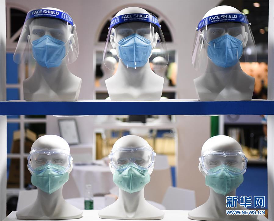 6月10日拍攝的展會(huì)上的口罩和防護(hù)罩產(chǎn)品。當(dāng)日,廣州國際防疫物資展覽會(huì)在保利世貿(mào)博覽館舉行。本次展會(huì)面積共計(jì)3.6萬平方米,設(shè)有防疫產(chǎn)品、設(shè)備、綜合服務(wù)、原輔料等4個(gè)展區(qū),參展企業(yè)約600家。新華社記者鄧華攝